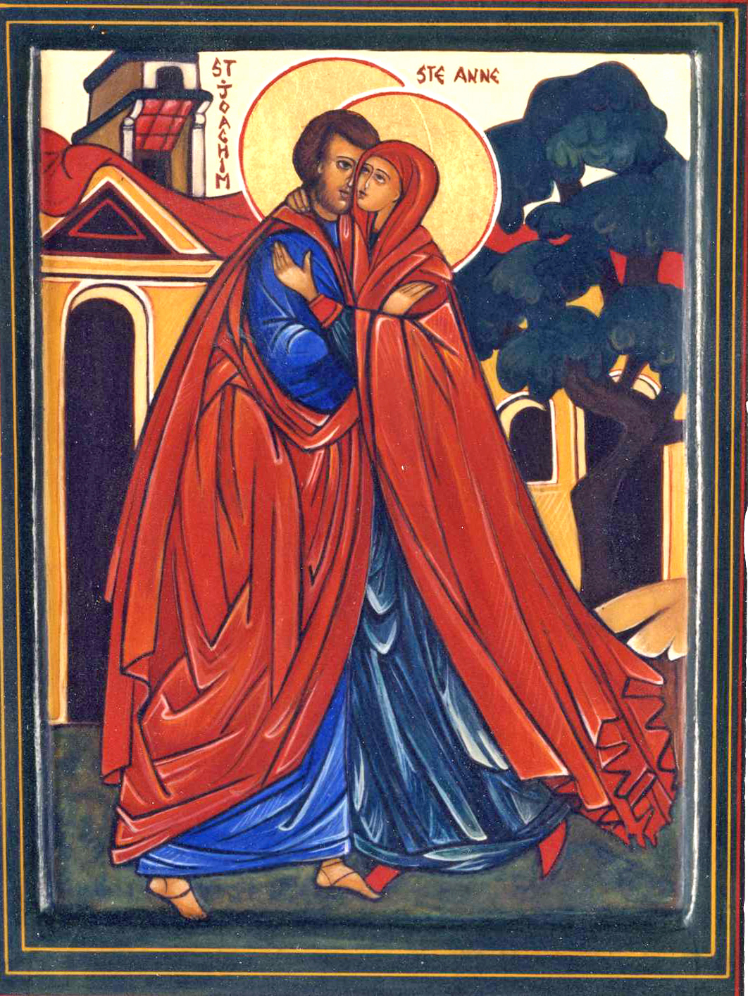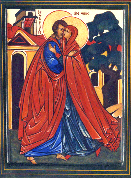 ICÔNE DE LA RECONTRE DE SAINTE ANNE ET SAINT JOACHIM, parents de Marie-Théotokos (dite aussi "La conception de Marie")